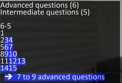 6-5 난이도에서도 5~6개의 문제를 완벽하게 대답해야한다. 6-5 난이도에서는 모든 문제가 advanced questions으로 나올 것이다.