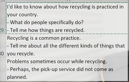 "Recycling is a common practice. - Tell me about all the different kinds of things that you recycle. "